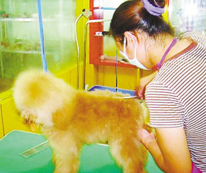 “這么熱的天,看它伸著舌頭不停地喘,可憐兮兮的;它的毛又這么長,就像披著一件厚棉襖,夏天肯定不舒服,所以就帶它來美容了。”昨天,市民徐小姐為了幫她心愛的京巴犬降溫,到寵物醫(yī)院花了90元錢,把“長發(fā)”打薄、剪短。