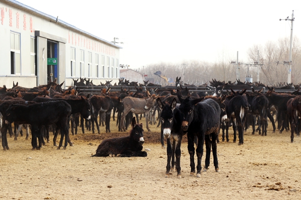 以“龍頭企業(yè)+合作社+農(nóng)戶”三方合作模式,有效帶動當(dāng)?shù)刎毨罕娒撠氈赂?。一方面貧困戶以扶貧資金入股合作社,合作社購買驢駒由企業(yè)代養(yǎng),無論盈虧,每年給入股貧困戶按照投資額的10%進行分紅。企業(yè)實現(xiàn)盈利后,公司和各村合作社按照6比4分紅。這是今年陽原縣大力推出的扶貧新思路。