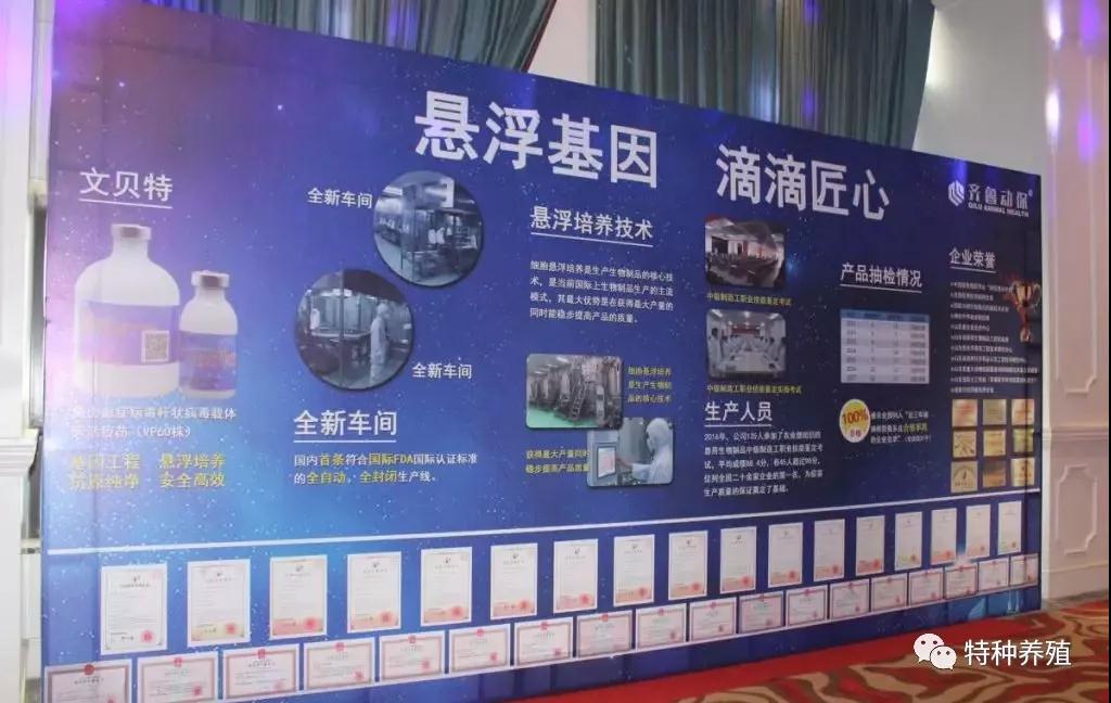 置身于會場之中,必然會被一塊藍(lán)色的展板所吸引。這塊展板以圖文的形式講述著新品文貝特背后的故事,從生產(chǎn)車間、研發(fā)工藝、抽檢情況,到技術(shù)人員、斬獲殊榮,相比于傳統(tǒng)兔瘟疫苗,文貝特具有強(qiáng)有力的優(yōu)勢,相信文貝特這款基因疫苗可以在市場推廣中創(chuàng)造輝煌,同時(shí)也相信齊魯動保生藥公司這家擁有六十年歷史的老牌企業(yè),可以獲得行業(yè)中更多領(lǐng)導(dǎo)、專家、用戶的認(rèn)可,讓“好疫苗 齊魯造”成為一塊金子招牌,永遠(yuǎn)屹立不倒。