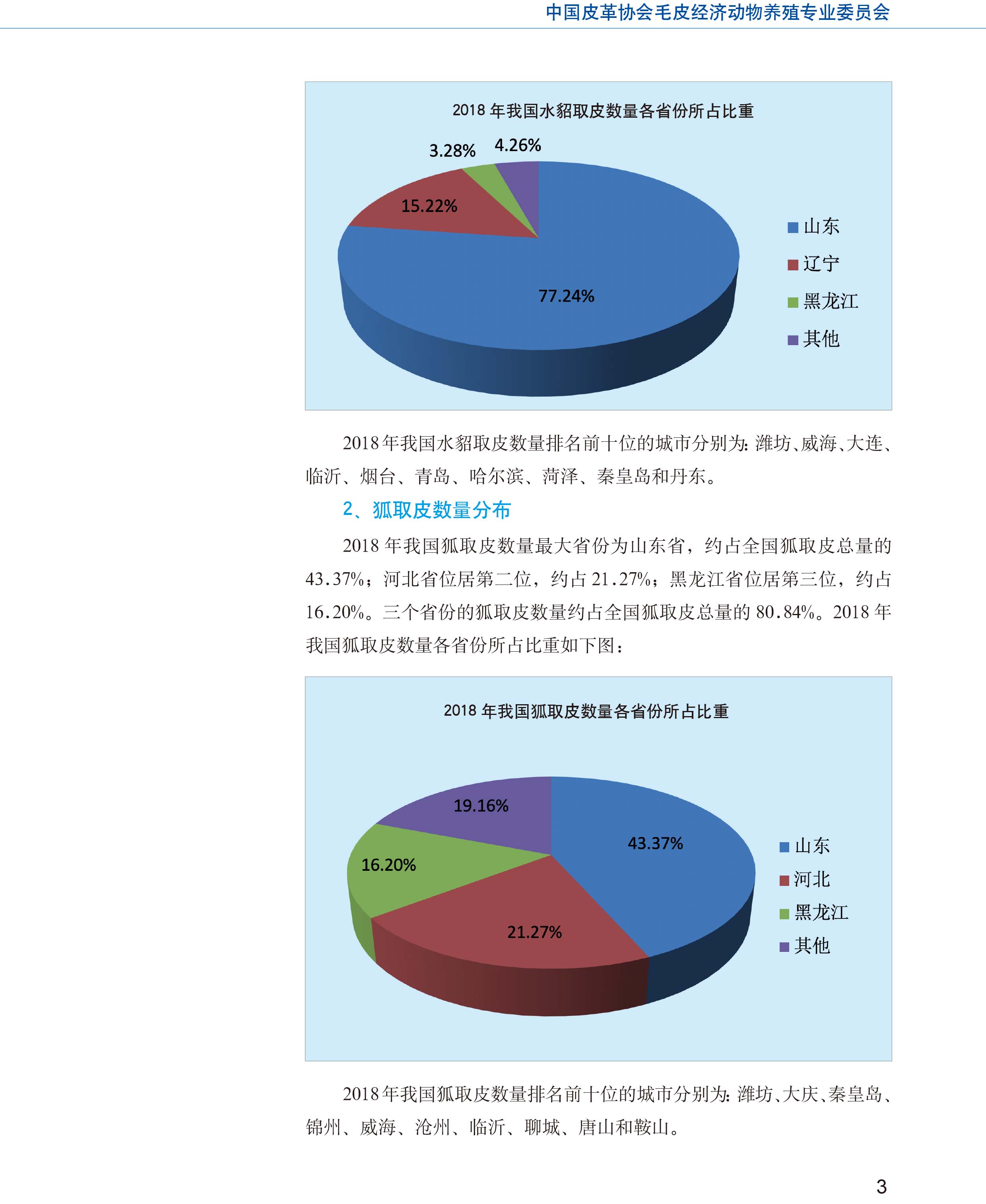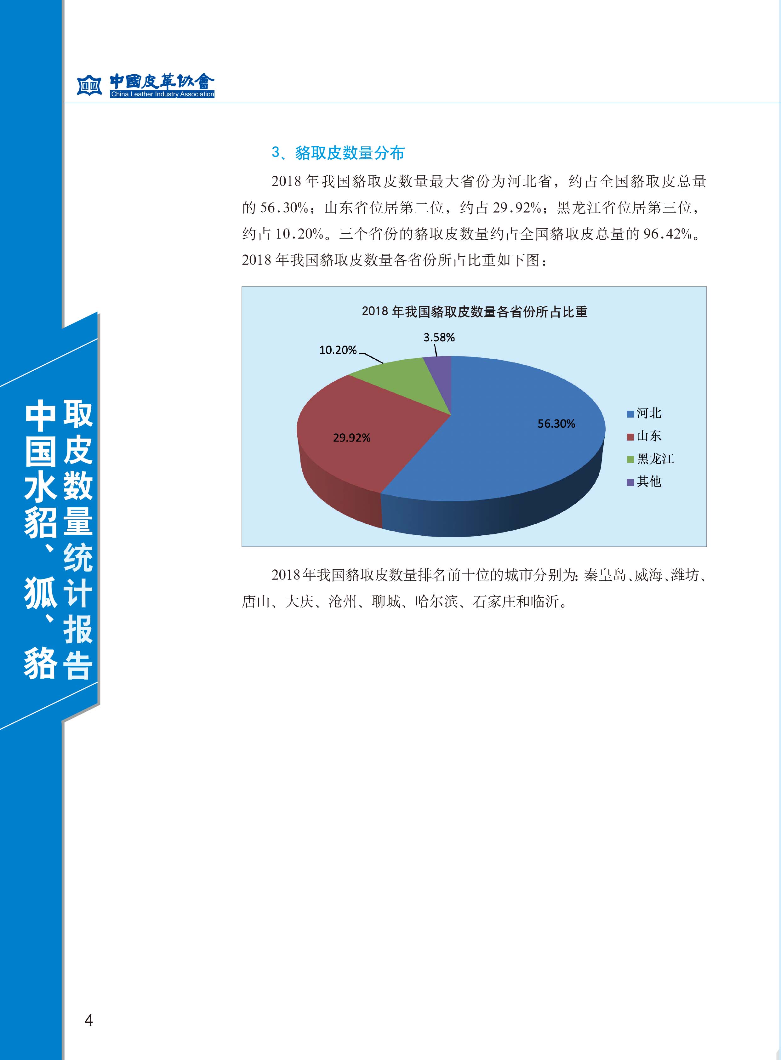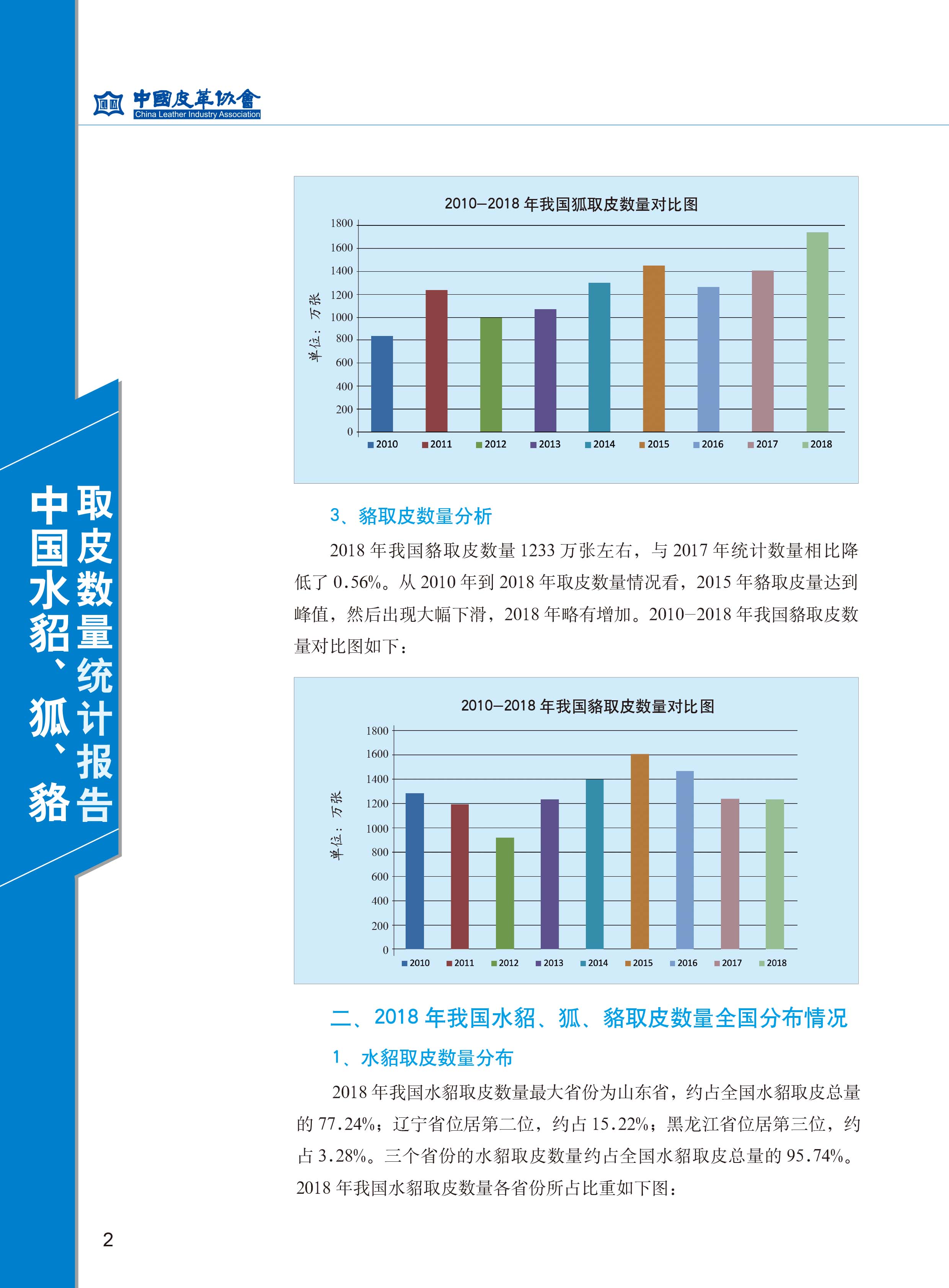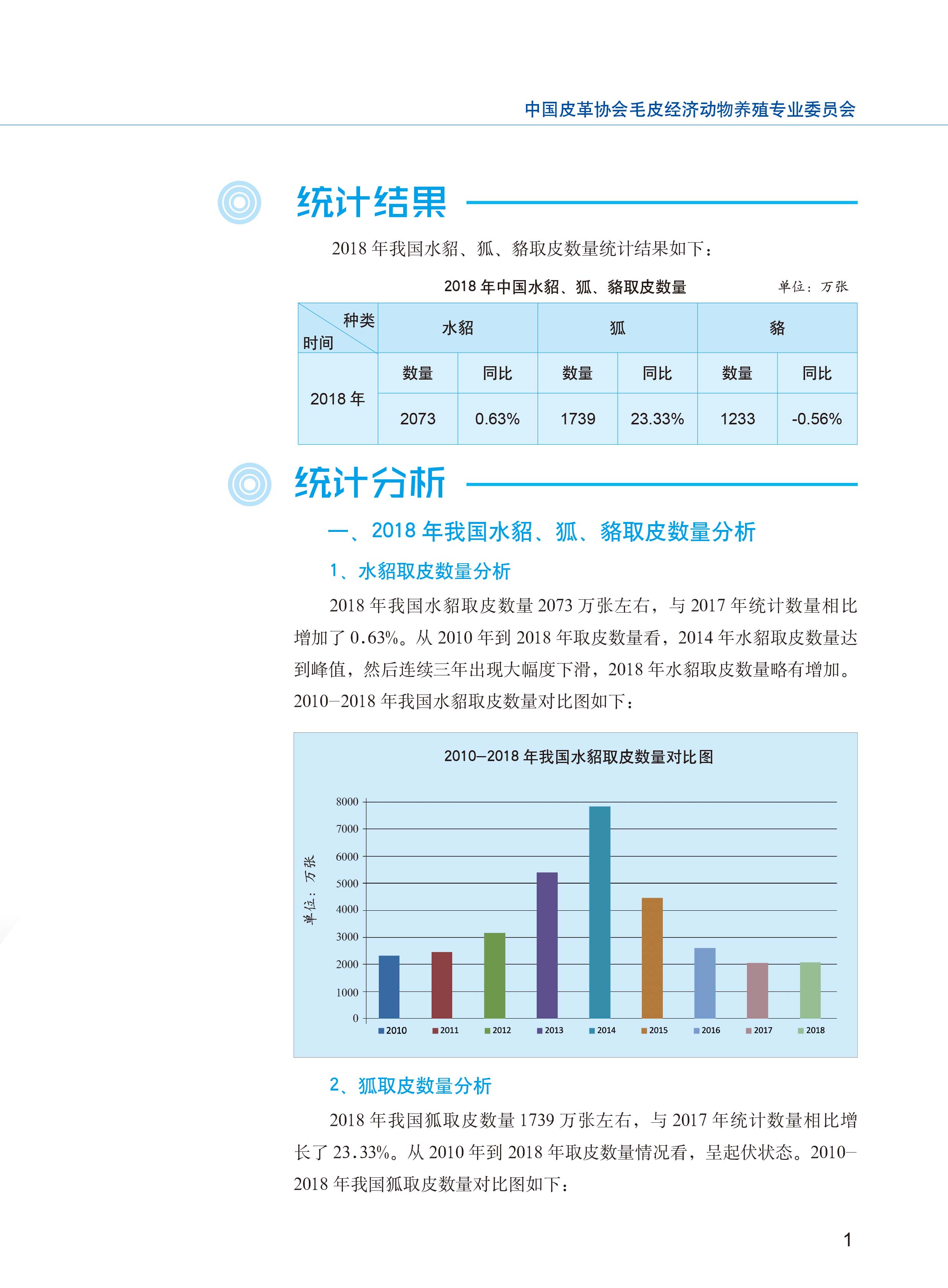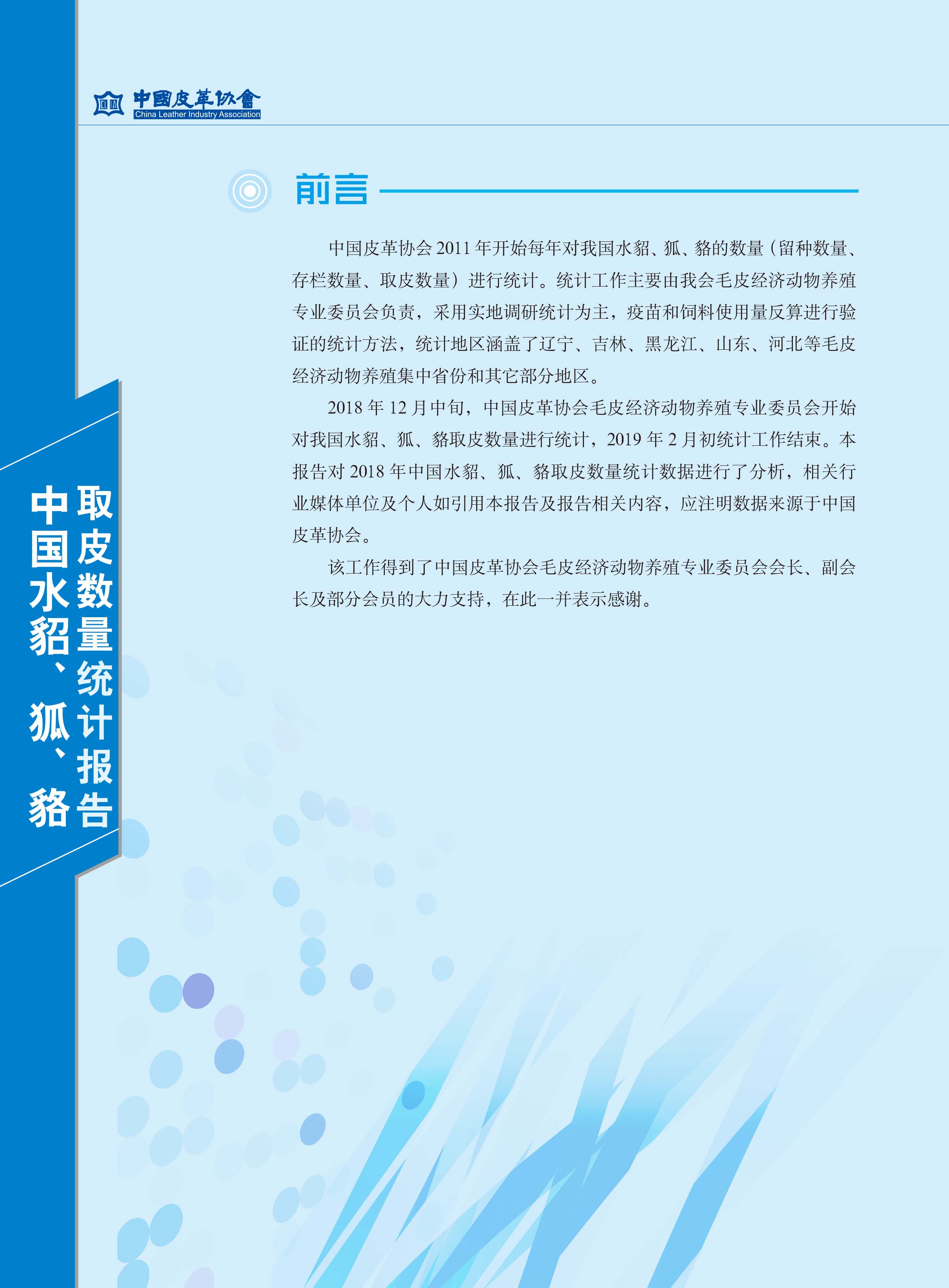 2018年中國水貂、狐、貉取皮數(shù)量統(tǒng)計報告