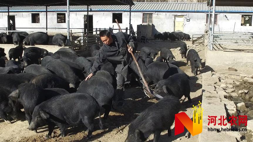 朱國利在豬場忙碌。初冬的山變得有些寂寥,河北省保定市阜平縣樓房村馬圈溝的山上卻很是熱鬧,一群藏香豬上拱下翻,它們餓食山珍、渴飲山泉,肆意撒著歡兒。隨著一聲哨響,兩百余