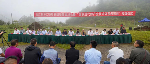 9月8日,貴州省臺江縣2020年養(yǎng)蜂扶貧現(xiàn)場會暨“國家現(xiàn)代蜂產(chǎn)業(yè)技術(shù)體系示范縣”授牌儀式在臺拱街道紅陽村地質(zhì)公園大門口舉行。全國蜂產(chǎn)品標(biāo)準(zhǔn)化工作組副組長趙小川