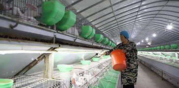 炎炎夏日,酷暑難耐。來到太行山下的河南省沁陽市西向鎮(zhèn)西向四街村澤豐養(yǎng)殖專業(yè)合作社的兔舍里,卻頓感涼風(fēng)習(xí)習(xí)。飼養(yǎng)員靳小利在一排排兔籠間穿梭,給兔子投喂食材。飼養(yǎng)員靳