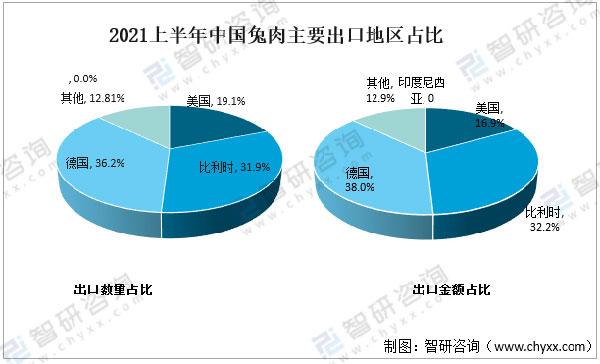 2021上半年中國(guó)兔肉主要出口地區(qū)占比