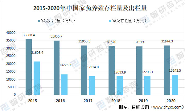 2015-2020年中國(guó)家兔養(yǎng)殖存欄量及出欄量