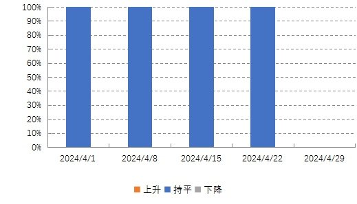 通過對中間環(huán)節(jié)集散地的價格進行監(jiān)測,與2024年3月份相比,2024年4月份中除第四周數(shù)據(jù)缺失外,其余每一周的銷售情況都為100%持平(見圖3)。