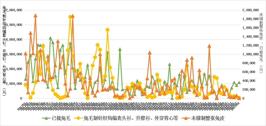 圖6 2017年1月-2024年3月其他兔產(chǎn)品出口額走勢