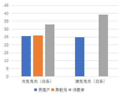 [1]平均各地消費價格的時候,由于福建省的兔肉均為黃兔和黑兔肉,價格比全國其他地方高出很多,實際計算時未將其計算在內(nèi)。