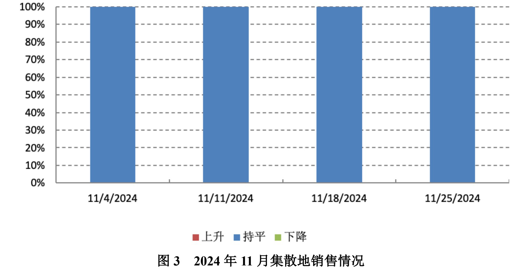 2. 通過對中間環(huán)節(jié)集散地的銷售情況進(jìn)行監(jiān)測發(fā)現(xiàn),與 2024年10月份相比,11月各周的銷售情況均與上月持平,兔產(chǎn)品市場總體保持平穩(wěn)。