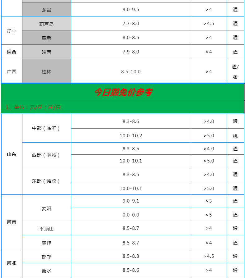 全國(guó)各地兔價(jià)行情信息快報(bào)?。?.18)