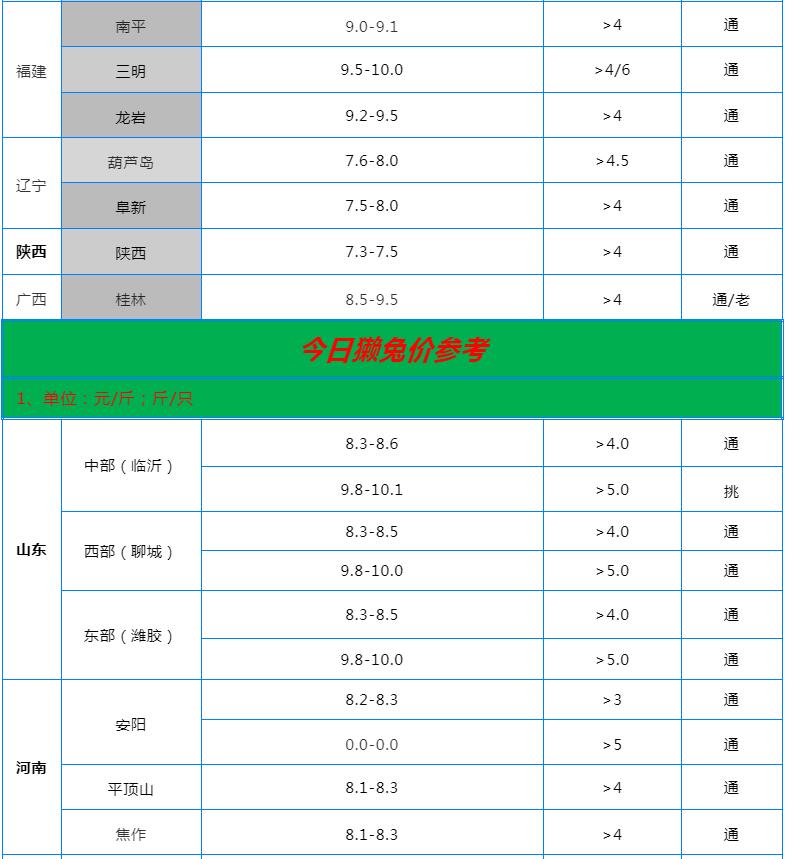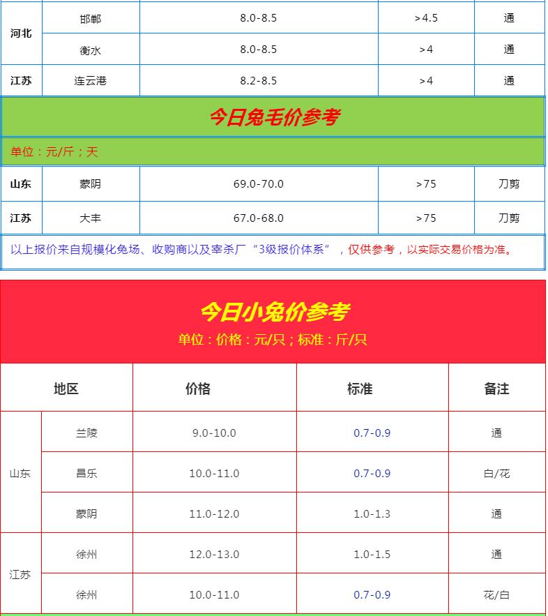 全國各地兔價行情信息快報?。?022.5.26)