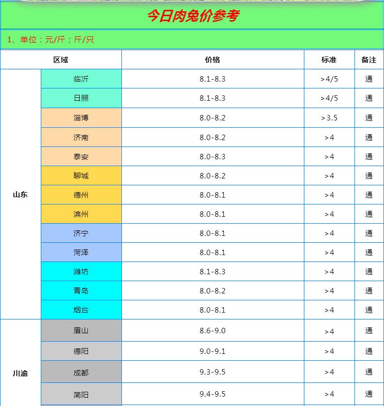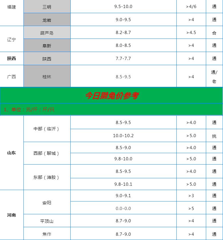 全國(guó)各地兔價(jià)行情信息快報(bào)?。?022.6.22)