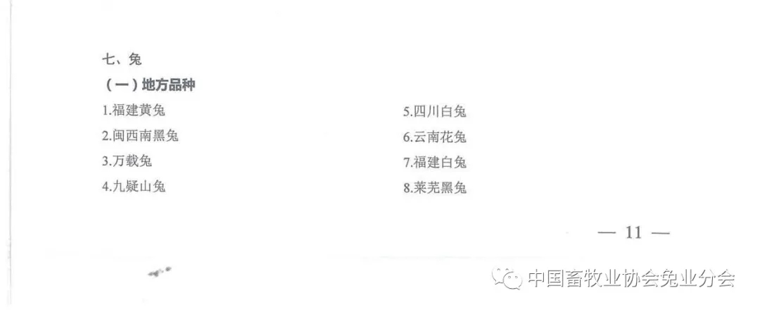 《國(guó)家畜禽遺傳資源品種名錄》(2021年版)兔業(yè)部分