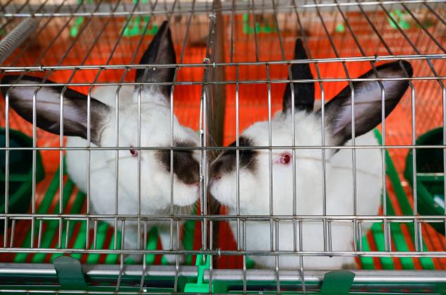 在養(yǎng)殖場(chǎng)內(nèi)拍攝的種兔。