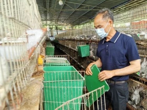 吳古龍查看幼兔情況 吳古龍是義龍新區(qū)龍廣鎮(zhèn)坡關(guān)村村民委員會主任,也是鎮(zhèn)十八屆人民代表大會的人大代表,近年來,除了開展好村里的日常工作外,他還帶頭創(chuàng)業(yè),發(fā)展兔子養(yǎng)殖,并鼓