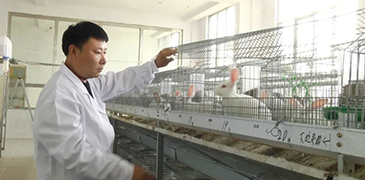 近日,走進(jìn)河南省平頂山市舞鋼市楊莊鄉(xiāng)崗李村兔子養(yǎng)殖基地,整齊劃一的養(yǎng)殖籠上掛滿食盒,一只只潔白的種兔膘肥體壯,有的蹦蹦跳跳,有的則悠閑地吃著飼料。 去年九月,通過研究