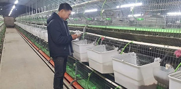 走進(jìn)山東省日照市莒縣夏莊鎮(zhèn)宏康養(yǎng)兔專業(yè)合作社,寬敞干凈的兔棚映入眼簾,兔籠內(nèi)雪白的兔子圓滾可愛、毛發(fā)光亮。合作社負(fù)責(zé)人盧兆亮正在給剛生產(chǎn)后哺乳的母兔們開小灶,喂食