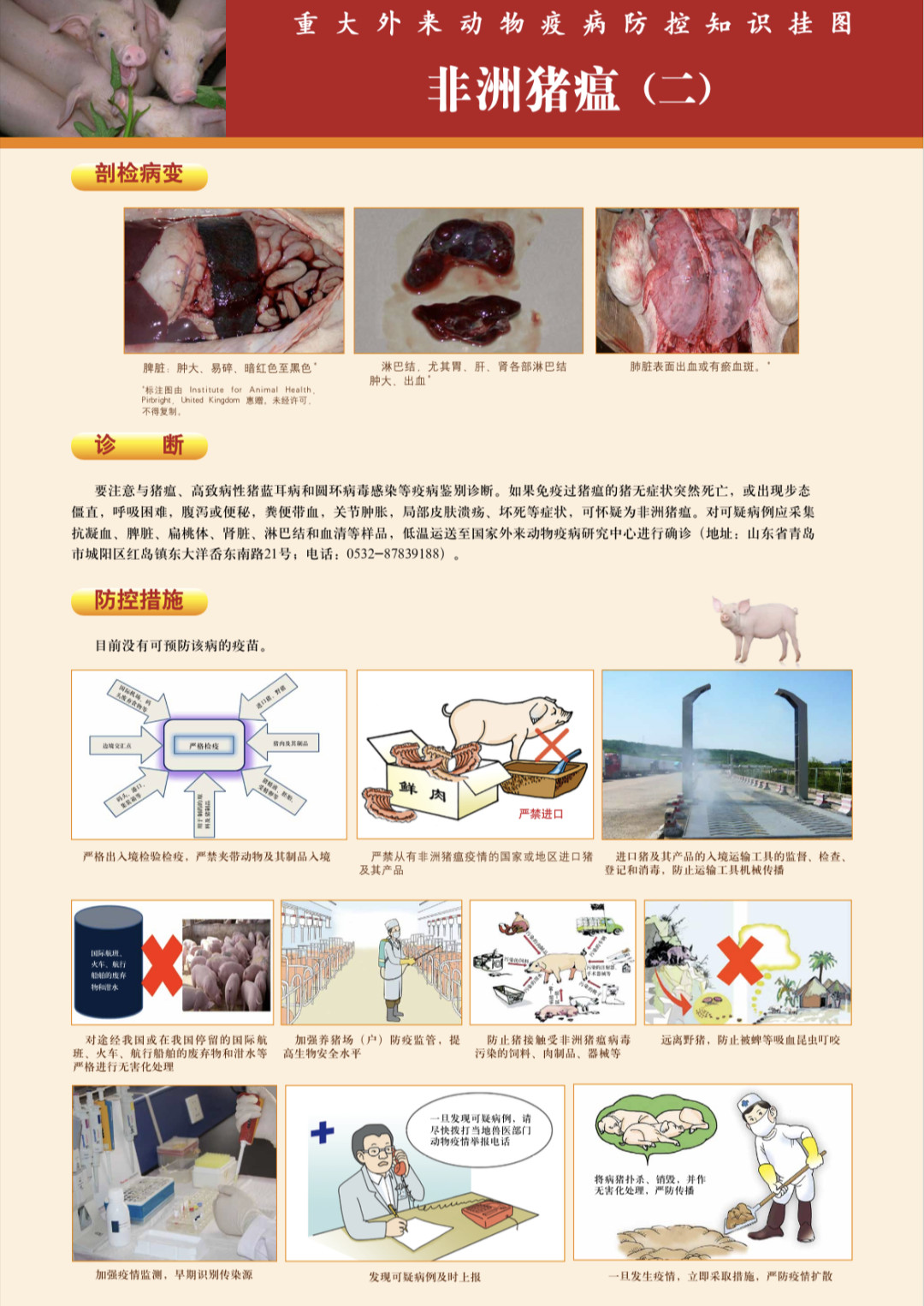 目前傳入我國(guó)的重點(diǎn)外來(lái)動(dòng)物疫病有非洲豬瘟、小反芻獸疫、牛結(jié)節(jié)性皮膚病等。