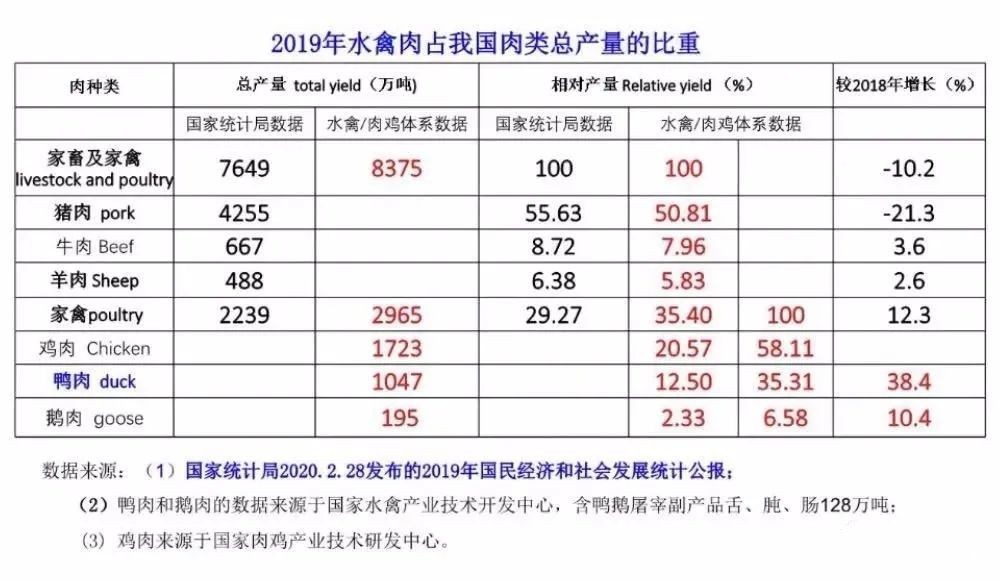 2019年,受非洲豬瘟疫情影響,全年豬肉產(chǎn)量下降21.3%,而禽肉產(chǎn)業(yè)得到較大發(fā)展,產(chǎn)量增長(zhǎng)12.3%,其中2019年鴨肉產(chǎn)量較2018年增長(zhǎng)38.4%,鵝肉產(chǎn)量增10.4%(數(shù)據(jù)來源于國(guó)家水禽產(chǎn)業(yè)技術(shù)體系)。