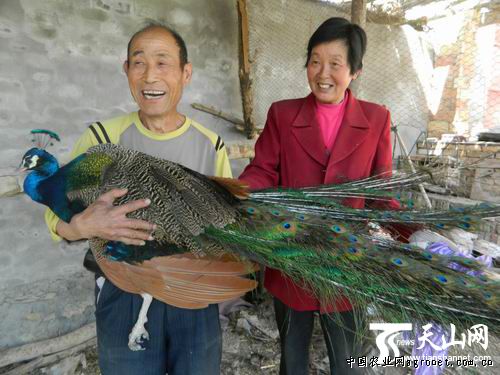 4月8日,新疆生產(chǎn)建設(shè)兵團(tuán)農(nóng)二師二十二團(tuán)退休職工張衛(wèi)新笑咪咪地抱著藍(lán)孔雀向大家展示。張衛(wèi)新夫婦自3年前就開始飼養(yǎng)觀賞型藍(lán)孔雀,在夫婦倆的精心照料下,現(xiàn)已成年的4只藍(lán)孔雀長得非常健康美麗,每當(dāng)孔雀開屏?xí)r,引來很多居民群眾駐足觀看。目前還有一窩孔雀蛋由火雞媽媽幫忙孵化,張衛(wèi)新夫婦希望孔雀隊(duì)伍更加壯大。