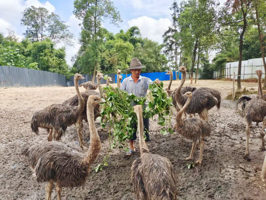 在四川省瀘州市納溪區(qū)豐樂鎮(zhèn)保安村鴕鳥養(yǎng)殖園,一只只高大的駝鳥在園中閑庭信步,鴕鳥養(yǎng)殖園業(yè)主張彪說,“養(yǎng)鴕鳥硬是劃算,不僅鴕鳥肉要賣120元/公斤,鴕鳥蛋都要賣30塊錢一個。加之周邊無人養(yǎng)殖,很多人還帶著孩子驅車前觀賞呢,更促進了我的鴕鳥蛋和鴕鳥肉銷售。”