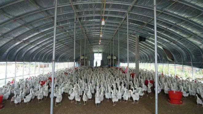 熟門(mén)熟路,掀簾進(jìn)棚,記者一愣,滿棚白鵝個(gè)頂個(gè)壯實(shí),比一般養(yǎng)殖鵝大不少。都長(zhǎng)這么大了,咋還沒(méi)出欄呢?