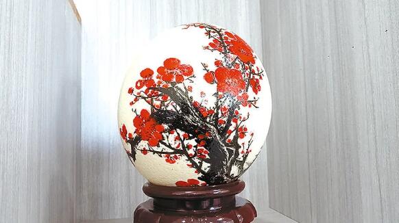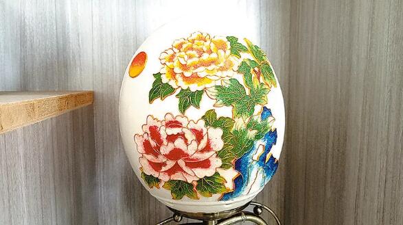 雍容華貴的牡丹、逸趣橫生的梅花、濯清漣而不妖的蓮花、活潑靈動的金魚……如果不是親眼所見,還真讓人難以置信,一枚枚鴕鳥蛋殼上竟能彩繪、雕刻出如此驚艷的圖案,而這些藝術(shù)品就來自上河南省駐馬店市蔡縣的一個小鄉(xiāng)村。
