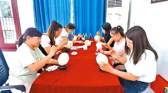 鴕鳥蛋雕藝術(shù)品經(jīng)過包裝、宣傳、推廣,深受客戶喜愛,訂單源源不斷。喜歡琢磨事兒的郭建光還為鴕鳥蛋殼設計了燈光系統(tǒng),讓鴕鳥蛋雕藝術(shù)品不僅白天有“顏值”,晚上觀賞效果更佳。目前,該公司年銷售鴕鳥蛋及鴕鳥蛋藝術(shù)品6000多枚,帶動多名手工藝人在家門口實現(xiàn)就業(yè)夢。