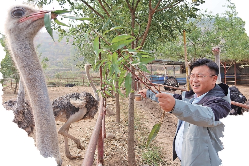 “有一回去滕州學(xué)習(xí)考察,看見一個農(nóng)家樂老板養(yǎng)了幾只鴕鳥,覺得很新奇。一問才知道,人家這鴕鳥不是養(yǎng)來吃的,是為了吸引顧客。”當(dāng)時楊雨心里就有了盤算。他回到村里,與“兩委”成員一商量,決定發(fā)展這一特色養(yǎng)殖,把村里的現(xiàn)有資源化零為整。