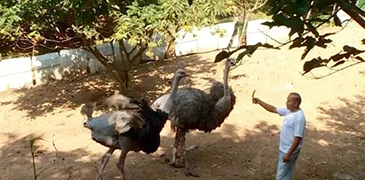 走進(jìn)河南省南陽(yáng)市淅川縣西簧鄉(xiāng)白莊村鴕鳥養(yǎng)殖基地,圍欄里一只只鴕鳥在夏日微風(fēng)中悠閑地踱步、覓食、嬉戲??匆娪腥说絹?lái),它們便撒開大長(zhǎng)腿肆意奔跑,時(shí)不時(shí)的伸長(zhǎng)脖子?xùn)|張西