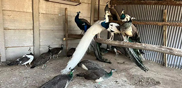 一只只藍(lán)孔雀正在圈舍悠閑自得地散步,展示優(yōu)雅的身段,旁邊的花孔雀不時抖擻著身上的羽毛,在陽光的照耀下閃閃發(fā)光,再看那全身雪白的白孔雀,在吊木上飛上飛下,嘴里還咀嚼著菜葉