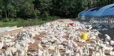 未見其鵝,先聞鵝聲。人剛走近張榮良的肉鵝養(yǎng)殖場(chǎng),門口小狗就警覺地叫起來,汪汪聲一下引響了大鵝嘹亮的嘎嘎聲,養(yǎng)殖場(chǎng)頓時(shí)喧囂起來。 “這茬鵝有6000多只,幾天后就可