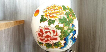 手工藝人正在鴕鳥蛋殼上繪畫 鴕鳥蛋彩繪藝術(shù)品 鴕鳥蛋彩繪藝術(shù)品 雍容華貴的牡丹、逸趣橫生的梅花、濯清漣而不妖的蓮花、活潑靈動(dòng)的金魚……如果